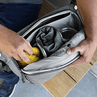 Cuatro bolsillos dentro del compartimento principal sirven para almacenar y organizar baterías de cámaras, tarjetas de memoria o pequeños dispositivos electrónicos, además de un bolsillo tipo sobre para transportar un iPad, tablet o computador de hasta 13 pulgadas. En el exterior posee un bolsillo ideal para libros, cuadernos o documentos. Para artículos más grandes como un trípode, monopie o ropa empacable, se incluyen correas de transporte externas para asegurarlos a lo largo de la parte inferior del bolso.